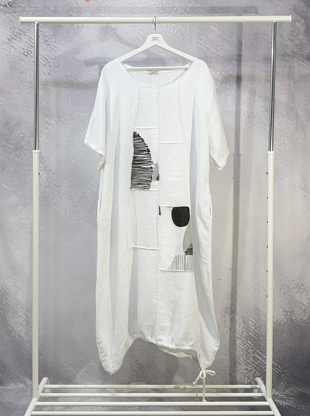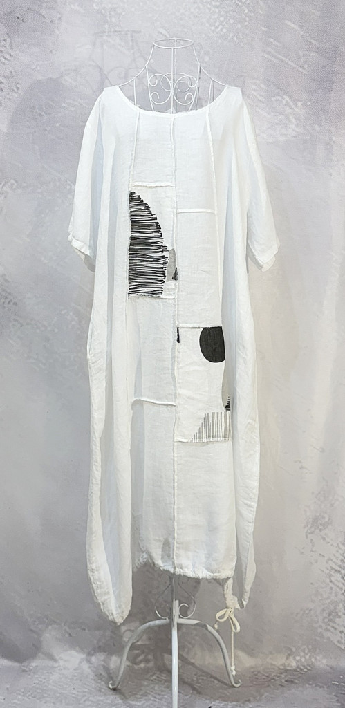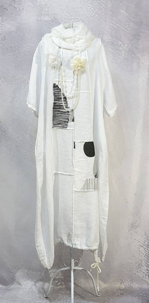 Patchwork over size len ruha cukorfehér